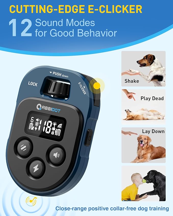 - 【Six Professional and Safe Training Methods】The ABBIDOT dog shock collar offers six professional yet easy-to-use training modes, including progressive vibration (with 36 intensity levels), safe shock (with 118 adjustable levels), and three audible tones (each with 9 adjustable levels). Each mode is scientifically designed to allow precise adjustment of training intensity based on your dog’s temperament and real-time response. While effectively correcting unwanted behaviors, it always prioritizes your pet’s comfort and safety.