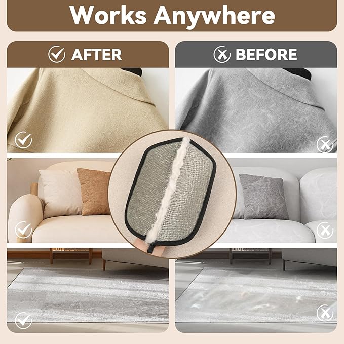 - 【Works on Multiple Surfaces】 From clothes, laundry, and bedding to sofas, carpets, and car interiors, this versatile hair remover for pets works on almost any fabric surface. Please note: it is not intended for grooming pets directly, but as a powerful pet hair removal tool for your home and car.