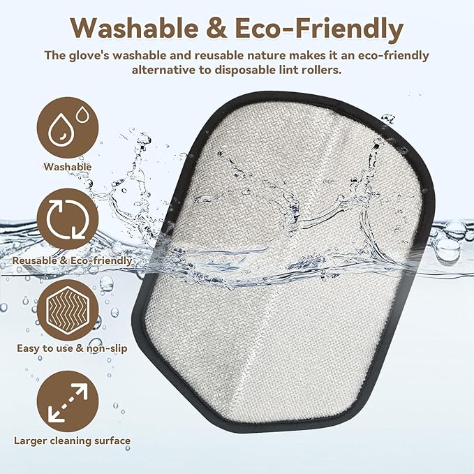 - 【Reusable & Washable Design】 Unlike traditional lint rollers, this pet hair remover glove is fully reusable. Simply shake off debris or rinse under water, and it’s ready to use again. An eco-friendly pet hair removal tool that reduces waste and saves you money in the long run.