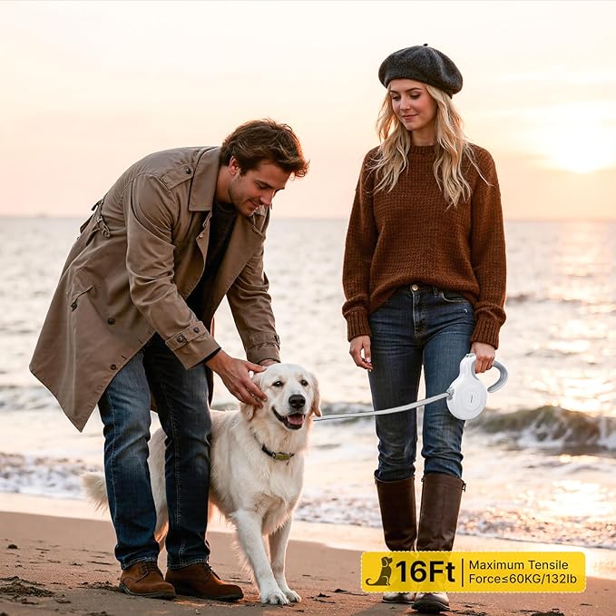 - 16FT Retractable Dog Leash – Lightweight & Strong for Dogs Up to 88 lbs Designed for small, medium, and large dogs, this durable yet lightweight retractable leash weighs only 1.05 lbs and extends up to 16 feet. It offers both freedom and safety, giving your dog room to explore while staying securely by your side.