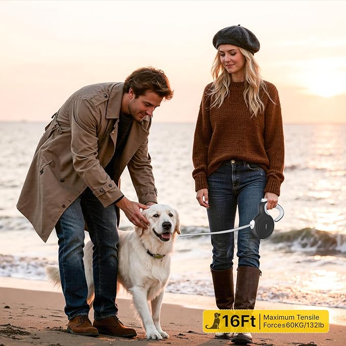 - 16FT Retractable Dog Leash – Lightweight & Strong for Dogs Up to 88 lbs Designed for small, medium, and large dogs, this durable yet lightweight retractable leash weighs only 1.12 lbs and extends up to 16 feet. It offers both freedom and safety, giving your dog room to explore while staying securely by your side.