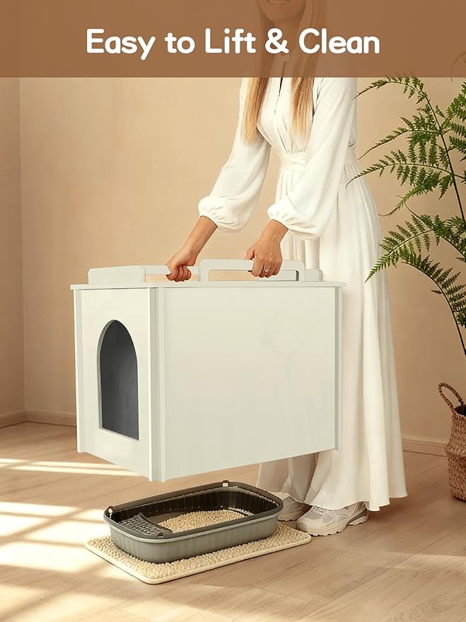 - Stylish and Multi-Functional: With its minimalist wooden look and multiple color options, this hidden litter box enclosure complements modern, farmhouse, rustic, or boho interiors. It can serve as a hidden litter box, a cozy cat house, or a stylish side table for plants and decor
