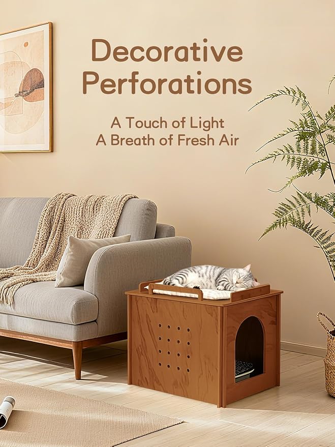 - Stylish and Multi-Functional: With its minimalist wooden look and multiple color options, this hidden litter box enclosure complements modern, farmhouse, rustic, or boho interiors. It can serve as a hidden litter box, a cozy cat house, or a stylish side table for plants and decor