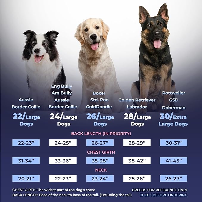 - 【INCLUSIVE SIZE RANGE】Back length includes: 8", 10", 12", 14", 16", 18", 20", 22", 24", 26", 28", 30". This dog down jacket offers a complete size selection ensures every dog finds its perfect fit. It accommodates most breeds, including popular large breeds such as Australian Shepherd, Labrador, Golden Retriever, German Shepherd, and Boxer. For accuracy, we recommend measuring your puppy's size and referring to the size chart to ensure the most comfortable fit.