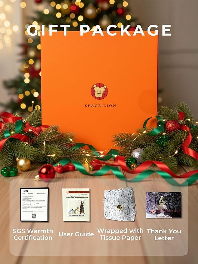 SPACE LION Dog Puffer Jacket, Down Winter Coat, Durable Outdoor Coat for Cold and Windy Conditions, Lightweight & Adjustable Fit Coats for Medium & Large Dogs, (Onyx Black, Size 16 Gift Box)