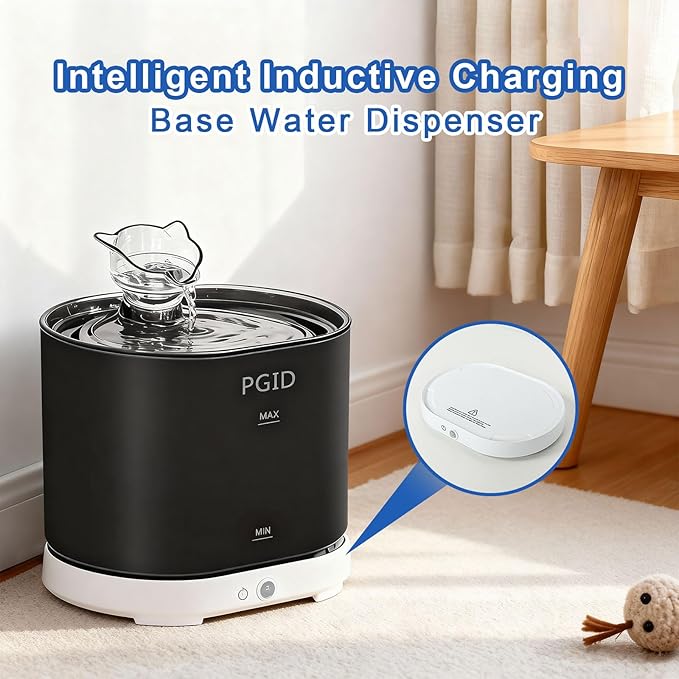 - Stay Hydrated All Days: FGID rechargetable dog water fountian have 2.2 L water capacity provides enough water for multiple pets to drink from and you don't have to worry that the water will run out when you're away from home. 210ml wide water tray still allow your furkid to be well hydrated when out of power. The drinking fountain is stable enough that your naughty cats never knock it over