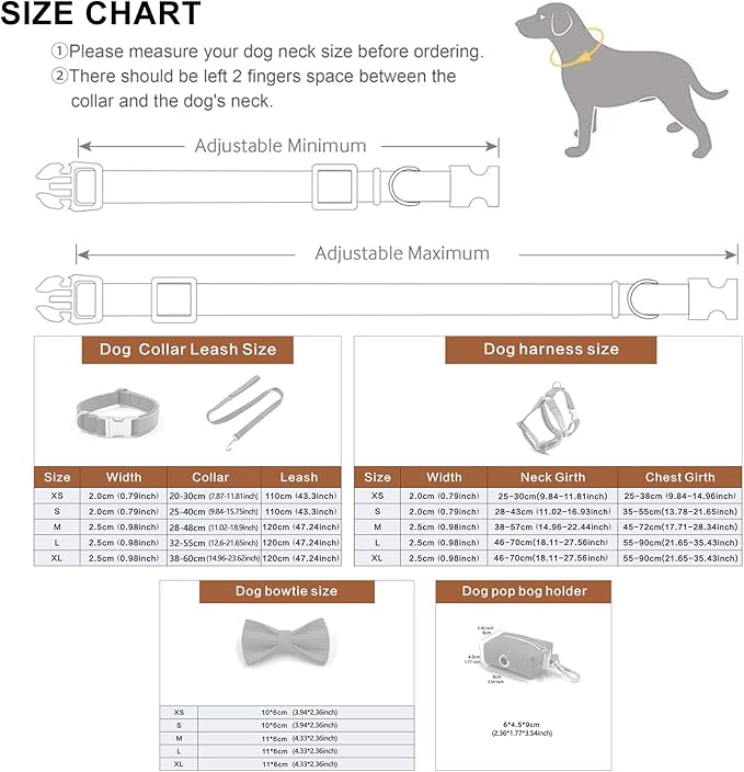 - 【Variety of Patterns and Colors】 Choose from a wide selection of patterns and colors to suit your pet's style and preferences, also there is a matching bow tie and leash as your option