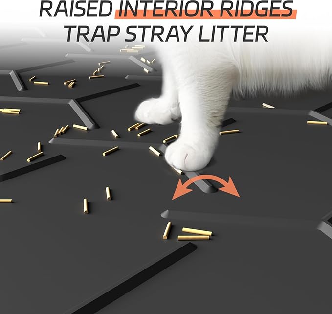 - Extra Large Size: 28 "x 40"/71*102 cm, covers a wide range of areas, fits two large or three small litter boxes. The Extra large litter mat can collect most of the litter and urine. At the same time, provide more space for your pet to move around
