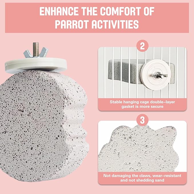 - Tool-Free Installation:Each bird beak grinding stone comes with complete mounting hardware for secure cage attachment. Simply adjust to desired positions within seconds - no additional tools required for creating the perfect avian habitat.