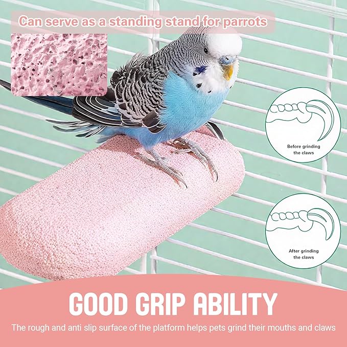 - Unique Shape Design: Our bird grinding cage perches mimic the shape of a small ice-cream and are beautiful and fun to look at. By gnawing on these stones, your bird's parakeet platform will keep their teeth healthy, which is great for claws and beaks. Perfect for parrots, budgies, and small birds to rest while naturally filing beaks and claws.