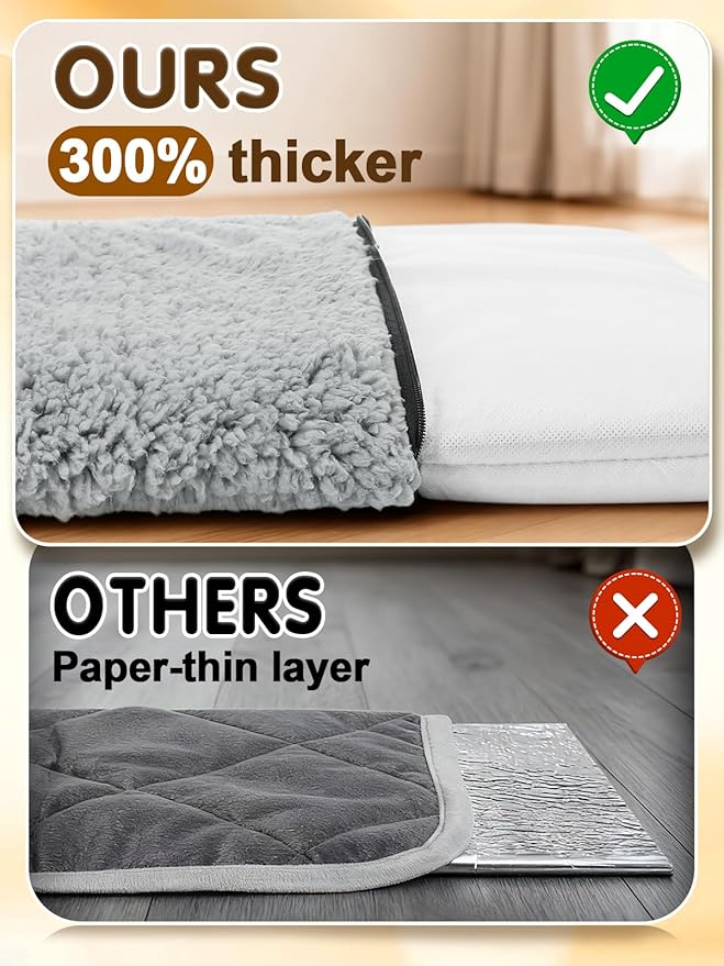 - Ultra-Quiet, Cozy & Anxiety-Friendly: Made with silent materials, this mat contains no crinkly noise layer, allowing sensitive or anxious pets to sleep peacefully. Creates a warm, quiet, soothing environment—ideal for indoor winter naps, nighttime sleeping, or calming nervous pets