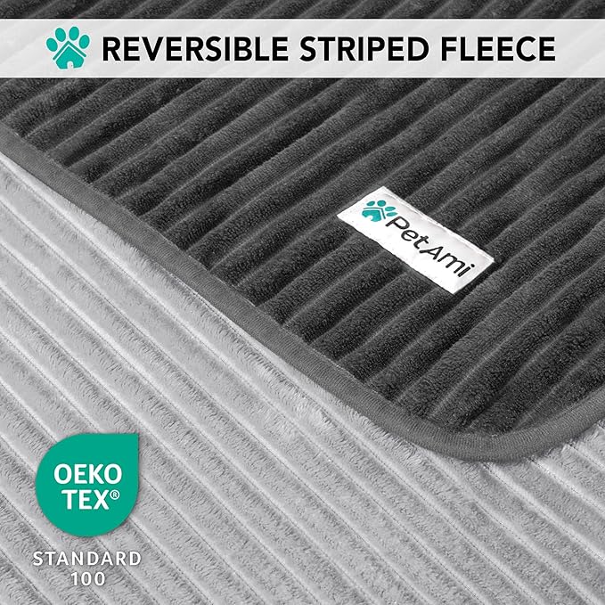 - REVERSIBLE STRIPED FLEECE DOG BLANKET: Designed with stylish striped pattern on both sides, this reversible pet blanket is soft, plush, and inviting for pets to snuggle. With fleece on both sides, it doubles as a comfy cushion for naps and sleep. Cover this fuzzy dog blanket on couches, pet beds, or use it as a waterproof pet mat for carriers, cars, or flights. Your pet stays cozy and relaxed wherever they are