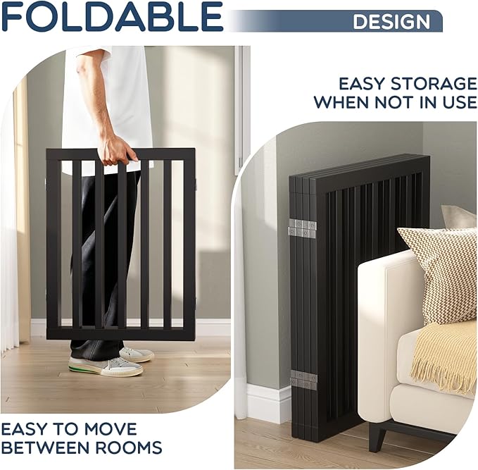 - 🐾Compact Storage & Portability🐾: When not in use, this folding dog gate collapses to just 23.6"L x 18.5"W x 3.5"H, easily storing in closets or under beds. Perfect for travel and small spaces, this foldable dog fence offers convenient protection wherever you go.