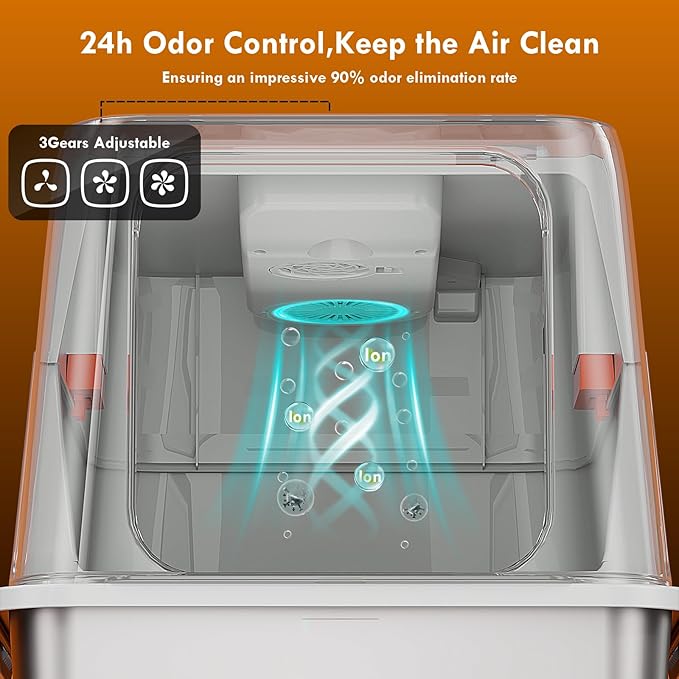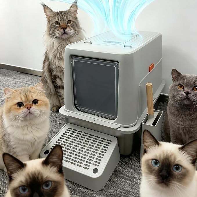 - Provides ample room for cats of all sizes to enter, turn around, and dig comfortably. The open-top design reduces feelings of confinement and is ideal for cats who dislike hooded boxes. It also allows for better air circulation, working in tandem with the odor control system.