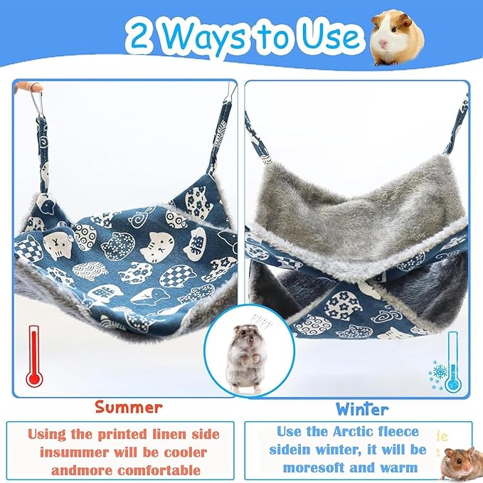 2 Layers Pet Rat Hammock, Double Sided Warm Flece & Linen Hammock for Cage, Hamster Guinea Pig Ferret Chinchilla Small Animal Bed, Hanging Hideout Swing Cage Accessories