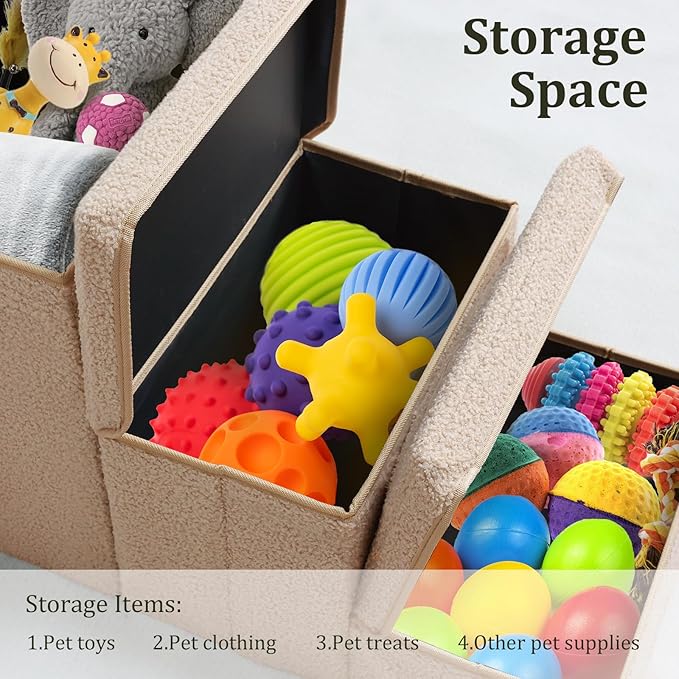 - 2-IN-1 DOG STAIRS WITH STORAGE: 3-Step pet stairs not only provide a stable and cozy stair for your pet to climb, but also serve as a convenient large storage area total for your pet's clothes, toys, or any other supplies. Our pet steps are covered with lids, Every steps are designed as storage boxes.