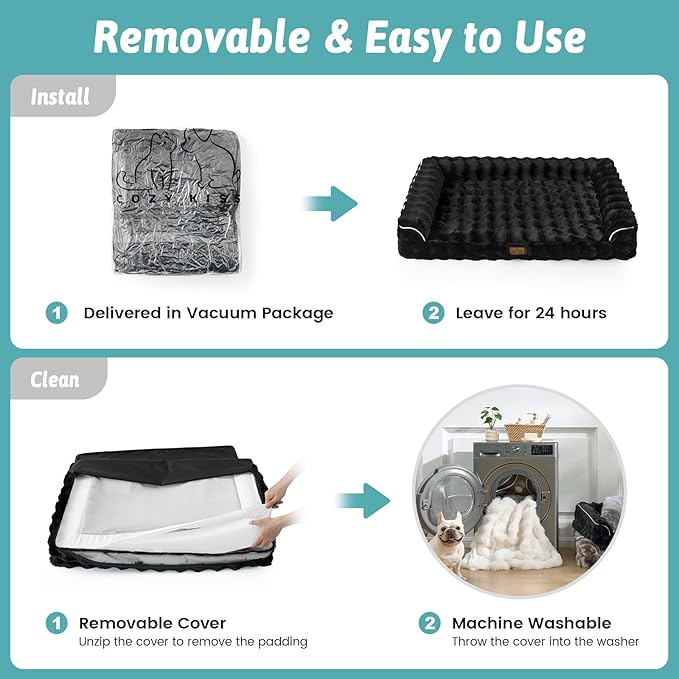 - High-Density Sponge: The dog bed uses 25D high-density eggshell sponge, which provides a soft return contact surface and better support, reducing the pressure on the joints caused by repeated movement of pets. Note: Do not clean the sponge foam