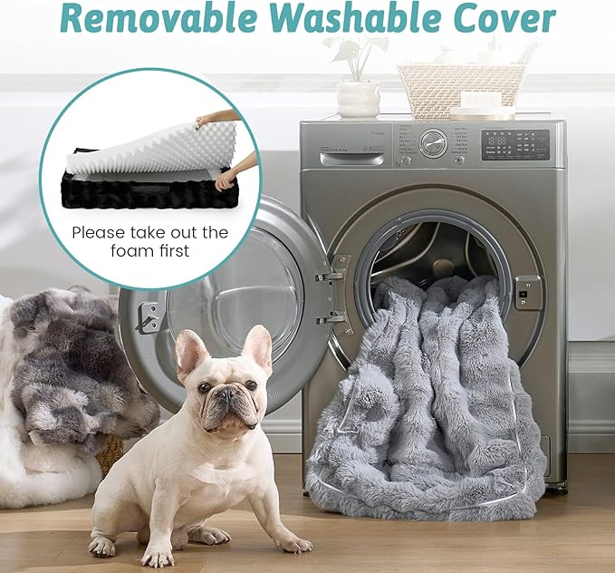 - Soft & Warm Dog Bed: COZY KISS faux fur dog bed are softer and warmer than other ordinary dog beds, specially designed for your pet in winter. Due to vacuum compression, it takes 24-48 hours to return to its original shape. Please note that the inner lining helps to prevent liquid penetration into foam, but the soft plush outer layer itself is not waterproof