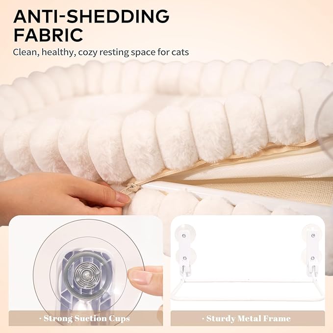 - Reversible Cushion: This window cat hammock is suitable for all seasons. One side is made of plush fabric, which provides a warm resting spot for your cat in winter; the other side features breathable mesh, allowing your cat to enjoy a comfortable nap even in summer. It’s a year-round cozy haven for kitty.