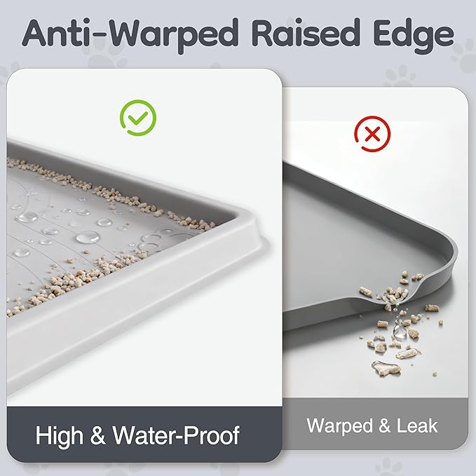 - 【1.38" Higher Raised Edge, Waterproof Urine Proof Kitty Litter Box Mat 】Our cat mat for litter box with unique higher raised edge design that resists warping. The litter trapping mat features a waterproof leakproof urine proof with 1.38" high-raised edges design that more effectively keeps water or urine from seeping into the floor