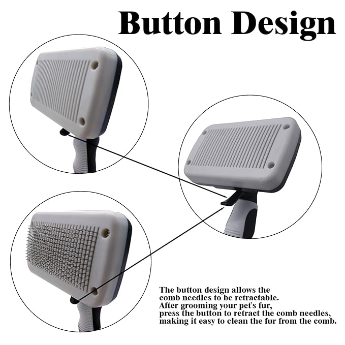 - 2.【Stop Painful Pulling: Self-Healing Pet Brush Tech】 Self-Cleaning Slicker Pet Brush removes Most of the bottom layer floating hair.135°bent needles + rubber tips glide under fur, zero scratch guaranteefor sensitive pets.