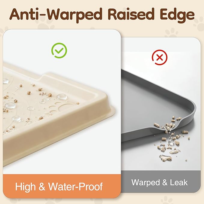 ISSEVE Cat Litter Mat 40" x 28" XL, Extra Large Silicone Mat for Litter Box, 1.38" Raised Edge Urine Waterproof Litter Trapping Mat Pad for Scatter Control, Soft on Kitty Paws, Protect Floor (Beige)