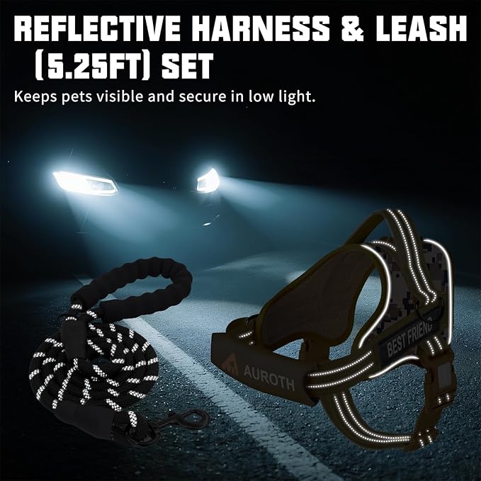 AUROTH Dog Harness and Leash Set, Soft Padded Service Dog Vest with 5.25FT Dog Leash, No Choke, Easy On Pet Vest, Adjustable Reflective No Pull Pet Vest Medium Sized Dog, Easy Walking and Training