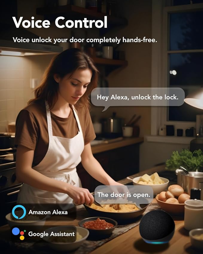 - 6 Flexible Unlocking Methods: This smart locks for front door offers 6 access options: fingerprint recognition, mobile app control, voice commands (via Amazon Alexa/Google Assistant), keypad codes, IC cards, and physical keys. Its self-learning AI chip continuously improves fingerprint recognition accuracy for faster authentication.