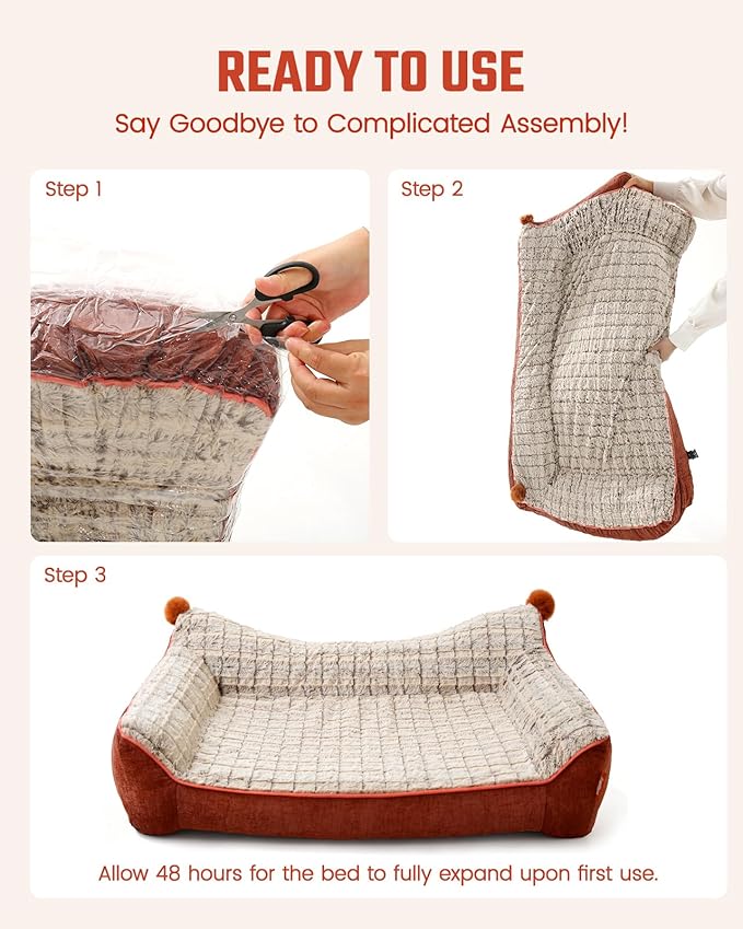 - Premium Materials: The sleeping surface of the dog bed is made of high-quality cut-pile rabbit fur fabric. The soft plush fabric provides a calming and anti-anxiety feel, creating a comfortable sleeping area for your pet. The bottom of the dog couch has a non-slip design to prevent the pet bed from moving and ensure your pet's safety.