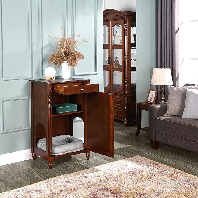 - [Multifunctional Cat Litter Box Enclosure]: This solid wood storage cabinet can not only hide your cat's litter box as a cat litter box enclosure, and you can put some cat food or cat litter at the first shelf. While the cabinet can be used as storage cabinet, decorative box or hidden furniture. Buy one piece of furniture and you can have multiple furniture functions at the same time.