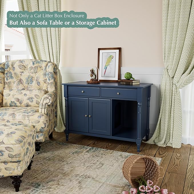 - [Multifunctional Cat Litter Box Enclosure]: This desk can not only be used as a cat litter box enclosure, but also can be used as a sofa table, storage cabinet or hidden furniture. Buy one piece of furniture and you can have multiple furniture functions at the same time.