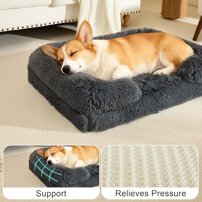 Orthopedic Dog Bed Large Dogs of Comfortable Memory Foam Pet Bed with Sides,Fluffy Dog Couch Sofa Bed with Anti-Slip Bottom Dark Grey L