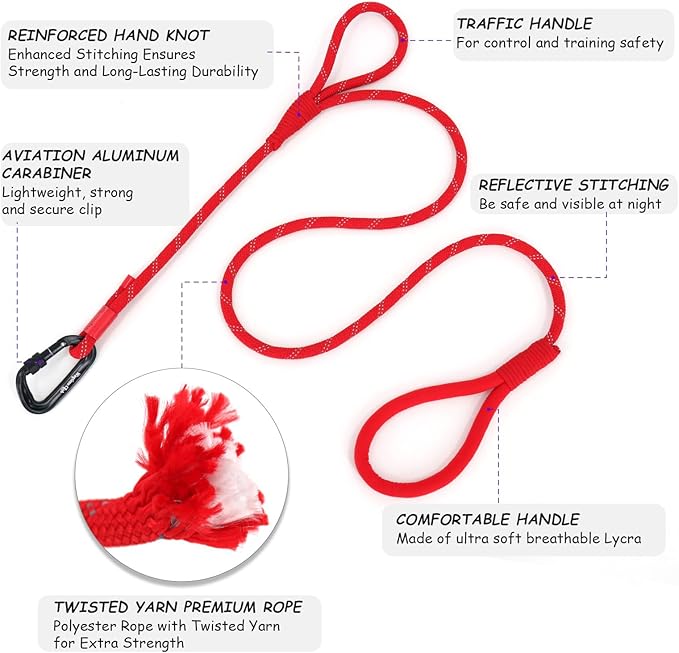 - HIGH-VISIBILITY REFLECTIVE STITCHING: Reflective trim on each dog leash boosts night visibility; these pet leashes and rope dog leash / double handle dog leash designs help keep you and your pup seen and safe.