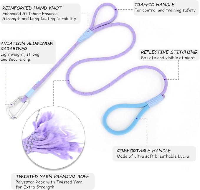 - HIGH-VISIBILITY REFLECTIVE STITCHING: Reflective trim on each dog leash boosts night visibility; these pet leashes and rope dog leash / double handle dog leash designs help keep you and your pup seen and safe.
