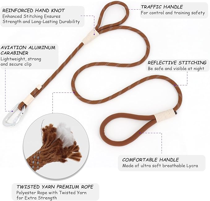 - REINFORCED HAND KNOTS & DURABILITY: Reinforced hand knot construction adds strength where it counts; these dog leash pet leashes—both rope dog leash and double handle dog leash—are built to last.
