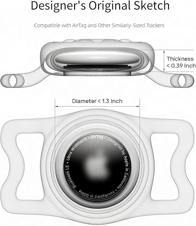 - 6.【Specially Designed for All Pet Collars】 : Stretchable straps made of flexible silicone adapt to different widths of pet collars.AirTag Holder Adjustable Width: 1 ~1.5 inch, you can attach the AirTag easily to dogs collars, cats collars, and luggage for worry-free tracking