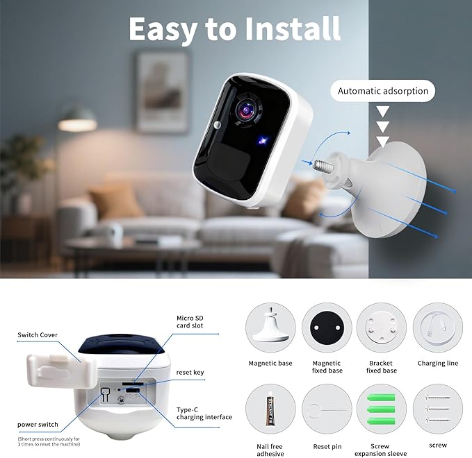 - 3MP Live Video and Full Color Night Vision Wireless Security Cameras: More advanced lens, 2.8mm focal length with 110-degree ultra-wide angle and 360-degree rotation. 3 MP ultra-clear quality porch camera. Dual light source night vision. Full-color night vision and infrared night vision are two options. Excellent lens and exquisite picture quality, wireless camera will not miss a single detail.