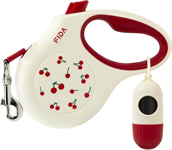Fida Retractable Dog Leash with Dispenser and Poop Bags, 16 ft Pet Walking Leash for Small Dog or Cat up to 26 lbs, Anti-Slip Soft Handle, Tangle Free, Reflective Nylon Tape (S, Cherry)