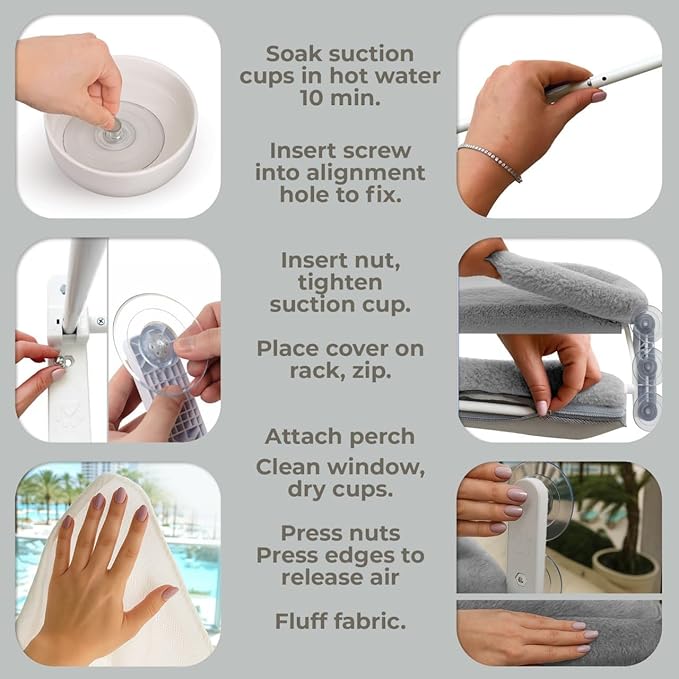 - Heavy-Duty Support: Equipped with 6 reinforced suction cups and durable metal frame, this cat window perch safely holds up to 50 lbs, suitable for one or two cats.