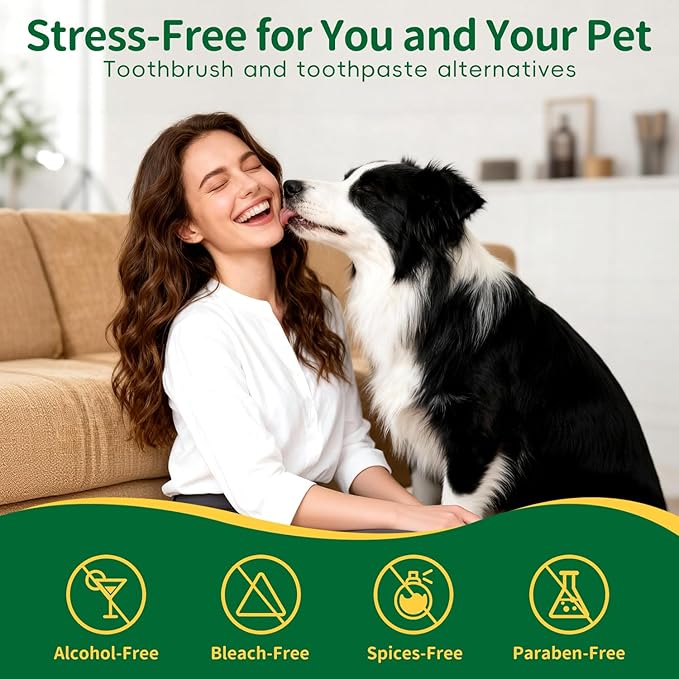 - Gentle & Safe Cleaning Without the Brush:Our gentle, non-woven finger wipes are designed for easy, stress-free cleaning of your pet’s teeth and gums. Made with a mild, non-toxic, and fragrance-free formula, they’re safe if licked and suitable for all breeds and life stages. Perfect for daily oral care—no brushing or rinsing required.