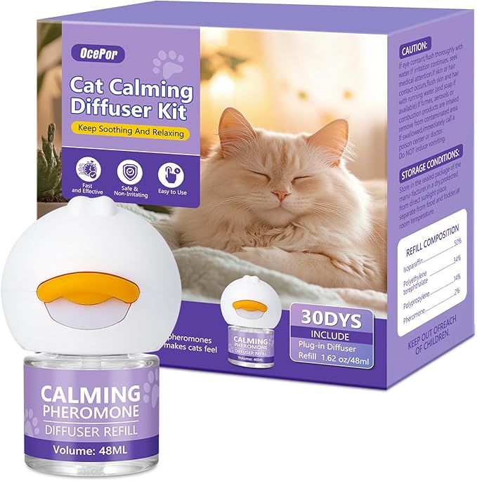 - 【Cat Calming Diffuser -Cat Anxiety Relief】This cat pheromone diffuser effectively relieves stress and anxiety in cats. This cat diffuser helps reduce tension and fights among cats, creating a calm environment. Especially suitable for new kittens or adopted cats.