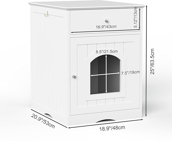GDFStudio Cat Litter Box Enclosure Furniture, Hidden Litter Box Cabinet with Drawer & Door, Decorative Litter House, Covered Cats Shelter Nightstand, Cat Boxes Enclosure Fits Most Cats, White