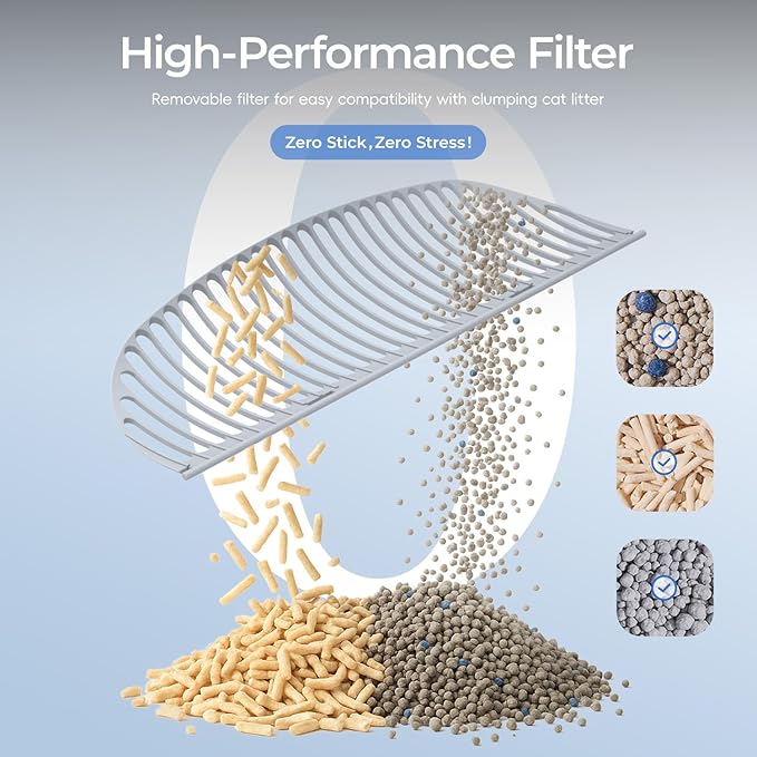 - Effortless Cleaning: Keep your home smelling fresh at all times. The self-cleaning mechanism efficiently separates waste after each use, while the sealed waste compartment and replaceable filters lock in unpleasant odors. The smooth, removable liner and detachable parts make cleaning and maintenance quick and hassle-free, no more daily scooping or mess.