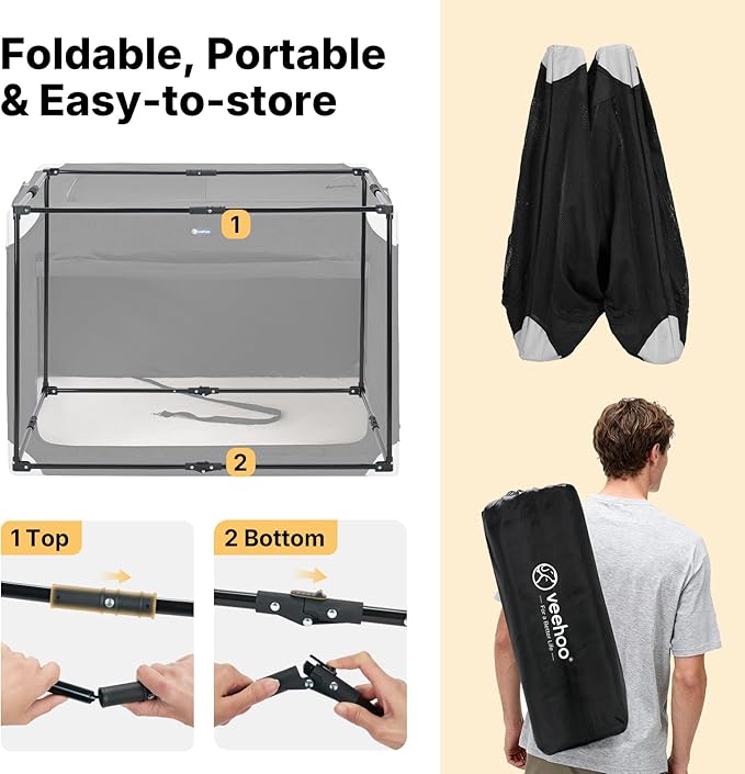 - 【Effortless Cleaning & Smart Storage】The durable Oxford fabric is waterproof and dirt-resistant, allowing for easy spot cleaning with a simple wipe,the plush mat is removable for machine washing (note: inner core is not washable); the portable dog crate NOT suitable for pets with aggressive chewing habits—the mesh windows and zippers may be damaged by intense scratching or biting