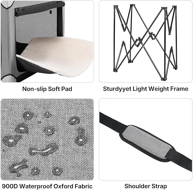 - 【Premium Durability & Safe Design】Constructed with a high-strength metal steel frame and covered in scratch-resistant, wear-proof 600D Oxford fabric for exceptional longevity; features four-sided mesh windows for superior ventilation and self-locking zippers to prevent pets from escaping. Includes a luxurious, thickened lamb wool mat to provide your pet with a soft and cozy resting area