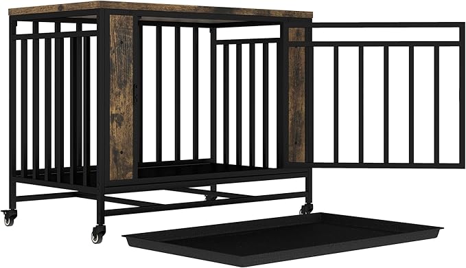 - 🐕【Rustic Chic Home Integration】 This vintage-style dog crate doubles as elegant furniture, seamlessly blending with your farmhouse or industrial décor. Its wooden exterior and iron door serve as a functional side table or nightstand in your living room, bedroom, or garage—no more sacrificing style for pet needs!