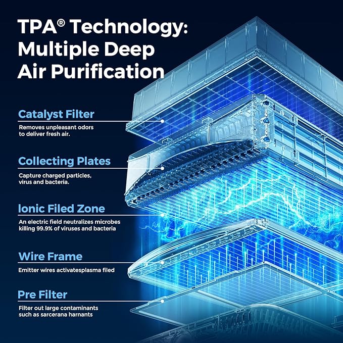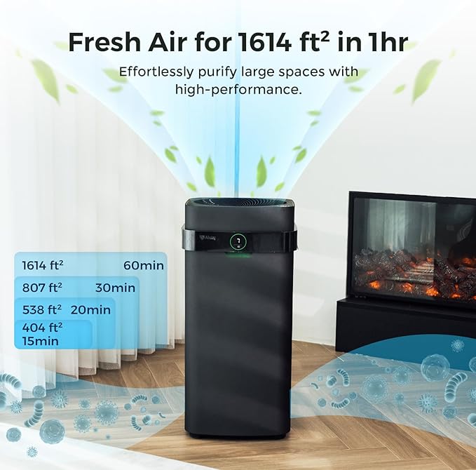 - Efficient Purification: Designed for spaces up to 1,614 sq. ft., this powerful air purifier for large rooms cleans the air in open-concept homes, spacious living areas, and busy offices—transforming the air you breathe in any room.