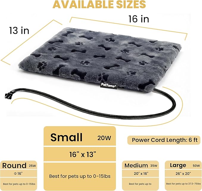 - 【Multiple Sizes with U.S. Support & Warranty】 Available in Small 16" × 13", Medium 20" × 16", Large 26" × 20", and Round 16" to fit most crates, kennels, beds, and baskets. Every PetTemp product includes a one-year free replacement or refund service—no questions asked. Our U.S. customer support team is ready to help whenever you need assistance.