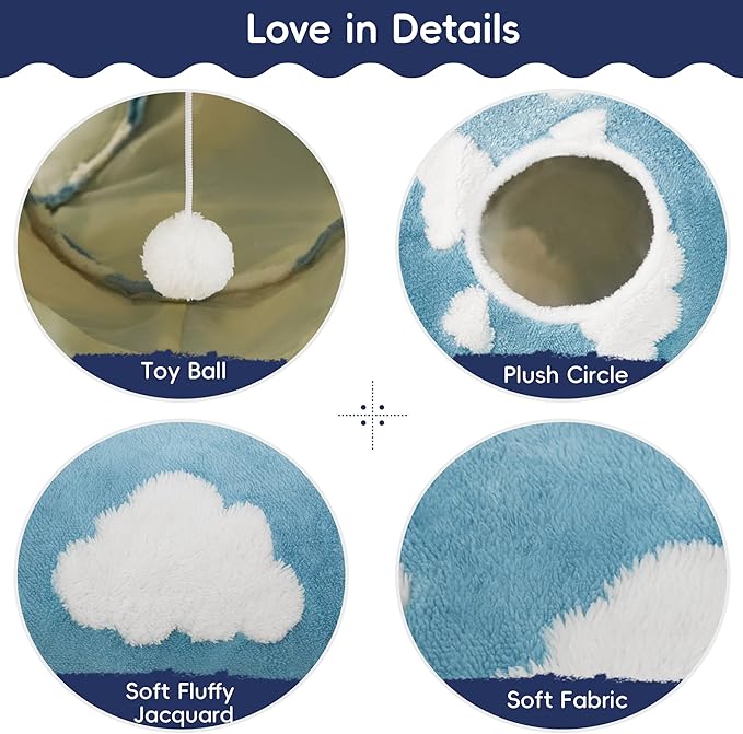 Tempcore Cat Tunnels for Indoor Cats, Cat Tube Toys 3 Way Collapsible, Pet Play Tunnel with Peek Hole Toy Ball for Kitty, Kitten, Rabbit, Blue Cloud