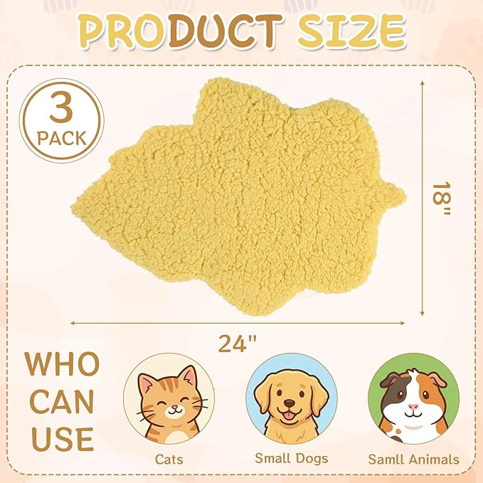 3 Pack Self Warming Cat Dog Bed Leaf Shape Self Heating Pet Mat Non Electric Washable Thermal Sleeping Pad Plush Heated Pet Mat for Crate Floor Indoor Outdoor(Light Yellow,Medium-18 x24)